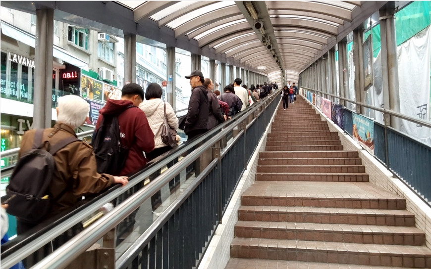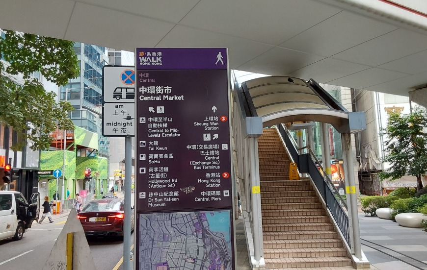 소호거리 (미드레벨 에스컬레이터 탑승 오전:10:00분 부터는 상행으로 운행하며 오전:09:59분까지는 하행으로 운행 합니다 South of Hollywood Road의 줄임말으로 아기자기하고 예쁜 카페와 세계 각국의 레스토랑, 와인바 등이 모여 북적이는 시내와는 사뭇 다른 분위를 느껴 볼 수 있는 곳! 주위에 홍콩스러운 벽화들이 즐비하고 있어 인생샷을 남기기에도 걸맞은 곳으로 뉴욕의 소호를 넘어서는 추세인 핫 플레이스이다. 또한 <중경삼림>, <다크나이트> 등의 영화에 등장한 소호 거리를 관통하는 미드레벨 에스컬레이터까지 같이 관광할 수 있는 곳이다.